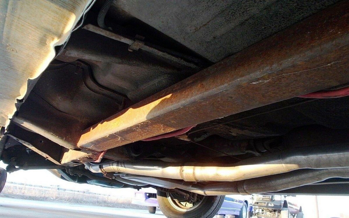 This is the best picture provided of the 400 cid V8. See the oil pan? Also, it shows what I believe are sub-frame connectors, a prudent addition to any powerful unibody car, and what might be the most questionable exhaust fabrication and trunk-mounted battery cable installation I’ve seen in a while. Still, nobody will see that stuff when you’re cruising on a warm summer evening trolling for victims.