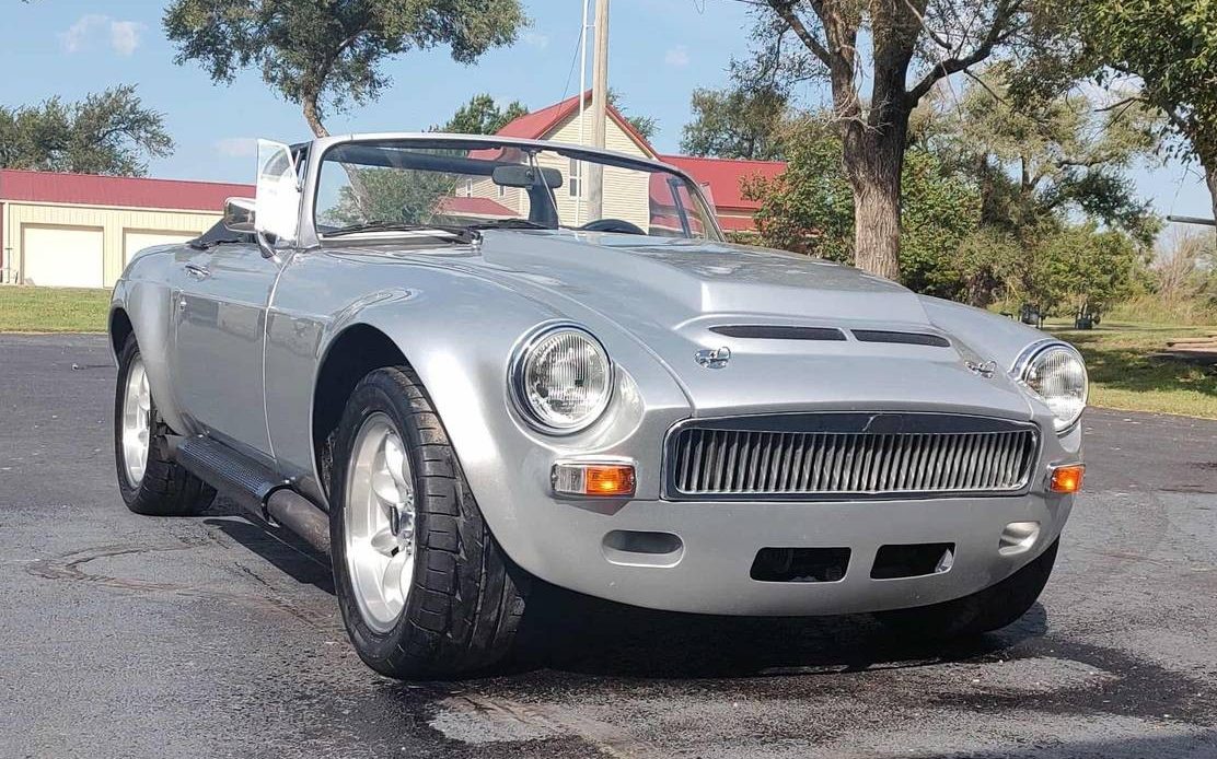 Autocross junkies will be glad to know the all-aluminum V8 weighs 20 kg LESS than the iron block four cylinder most familiar to us Yanks, according to Wikipedia. It seems a bit odd to refer to a convertible as a “GT,” as Grand Touring generally implies a conventional steel roof, but I’ll let the seller answer questions on that. The Sebring body panels include flared fenders, though I’m not sure about that hood. You can buy these panels for any MBG today from HoneybourneMoldings in the UK.