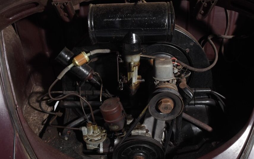 Power is provided by a 30 HP, 1100 CC, flat four-cylinder, air-cooled, rear-mounted engine driving a four-speed manual transaxle. While the engine certainly looks complete, original (except the fuel filter), and familiar, the listing makes no mention of operating aptitude – further inquiry will be necessary.