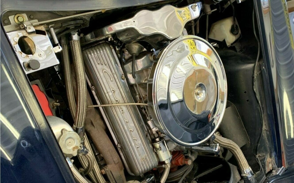The engine is a non-numbers matching 327 with a 1/64 date code. It’s stated to run well and doesn’t smoke, but there is some forged piston noise, and while the latter is said to not be excessive it does raise an eyebrow over the internal component integrity. Idle oil pressure is 60 pounds, and the car has had a recent oil change, The bell housing and transmission appear to be original, with a matching VIN stamp on the manual transmission.