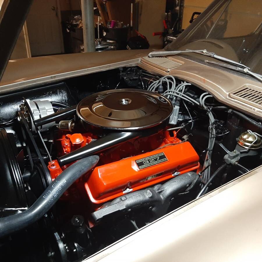 I own one like this but with the 327/340 HP and 4 speed. This one is missing all the radio shielding behind the engine.