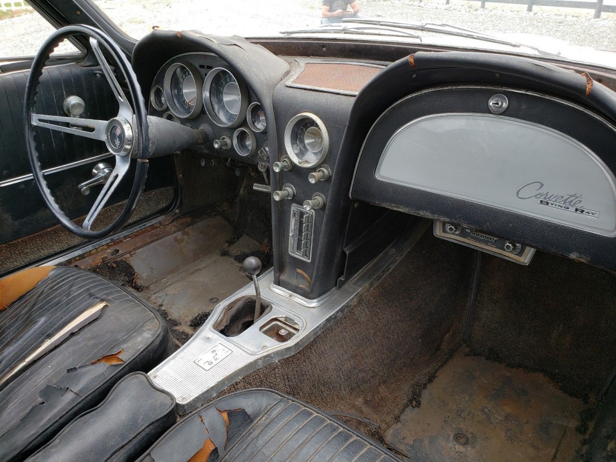 The car might have been in the garage under piles of stuff for a while, but from the looks of the paint and the interior it also looks like it sat in the hot Florida sun for a large chunk of its life. The topside paint and the interior shot of the parcel shelf behind the seats tells me that, and says the car needs lots of resto work including a new repro interior……unless you are into vintage Vettes with a grunge theme.