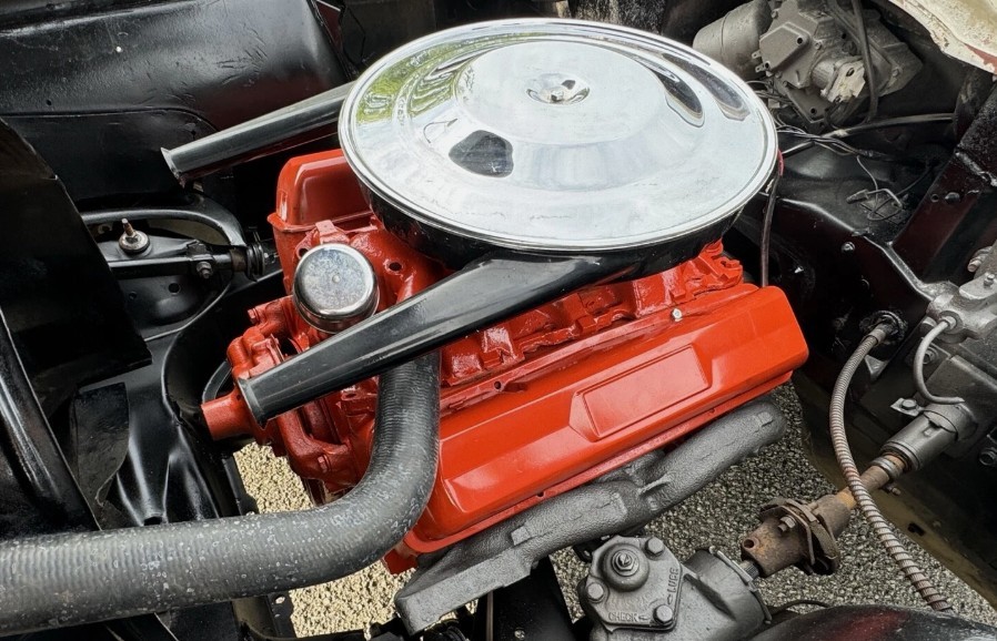 We’re told that the 327 cubic inch V8 in this Corvette is numbers-matching. Freshly painted, you’d think the 300 hp engine would be ready to rock, but the seller says it doesn’t run and needs to be rebuilt. The 4-speed manual transmission also needs work. This must have been a looker in the day with white paint over the fiberglass body, spotted by a black interior. The car isn’t 100% complete, so what you see is what you get.