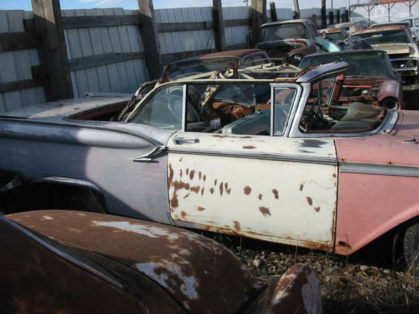 Next, let’s consider this 1959 Ford for $3,000. It’s apparent this car is wearing sheet metal from at least two cars and possibly three. Like the Newport, there might as well not be a top, and there’s certainly more rust in this car.