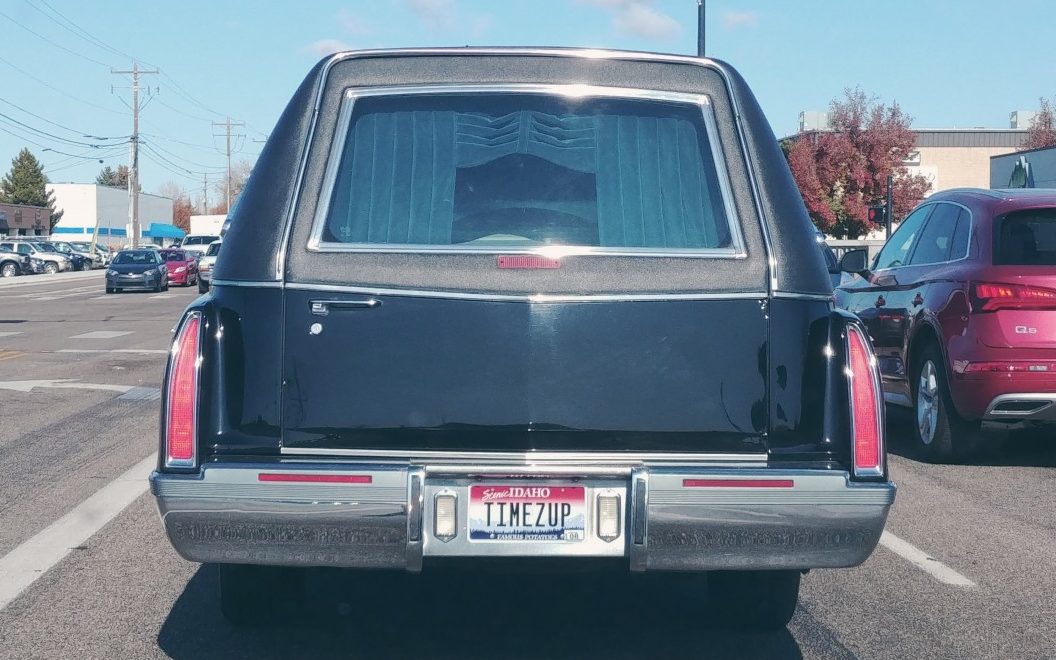 TIMEZUP… What a clever custom plate! It may be a little twisted, but it is sort of fun to see vehicles like this out and about. They are probably headed to a party or just out cruising, but for whatever reason, this is the time of year people pull these things out of their garages. Hearses and other funeral vehicles are interesting to automotive enthusiasts because we know what goes into building them. Many of them are “coachbuilt” and that work conjures up images of custom Rolls-Royces and the like.