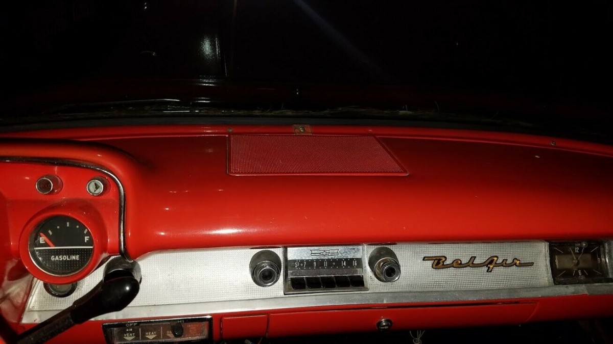 The Bel Air came with few additional options, with the seller noting it didn’t come equipped with A/C, padded dash, or power windows. Although the interior color scheme is correct, the interior pieces themselves are not original. Still, it looks respectable inside, especially for a car that has been sitting. As a bonus, black over red is one of the combos there is for a sports sedan.
