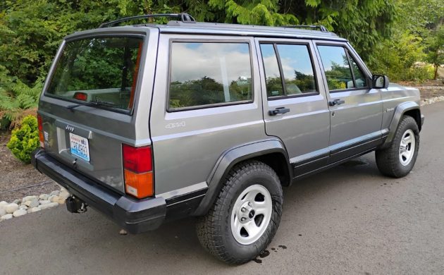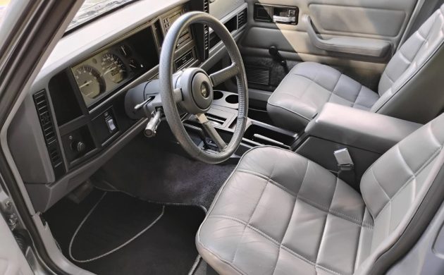 This Cherokee is Gray Mist Metallic, and there are a few little dings and some scratches visible. Given the fact that it wasn’t living in the upper-Midwest or Northeast part of the country, it appears to be solid with just some regular surface rust underneath. The seller says it was bought new at a dealership in Seattle, and it’s been in that area for the last 31 years. Here’s what the rear cargo area looks like: nice and clean as expected.