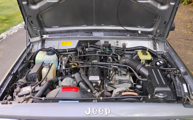 The clean engine is an AMC 4.0-liter OHV inline-six with 190 horsepower and 225 lb-ft of torque. It’s sent through a transfer case and and four-speed automatic to all four wheels as needed, and they say it runs and drives “excellent.” It’s reported to be original, other than the hitch on the back, a tow bar attachment on the front, and a different stereo. And the headliner, as mentioned. This looks like the one to have if you’ve been looking for a Cherokee. Any thoughts on this one?