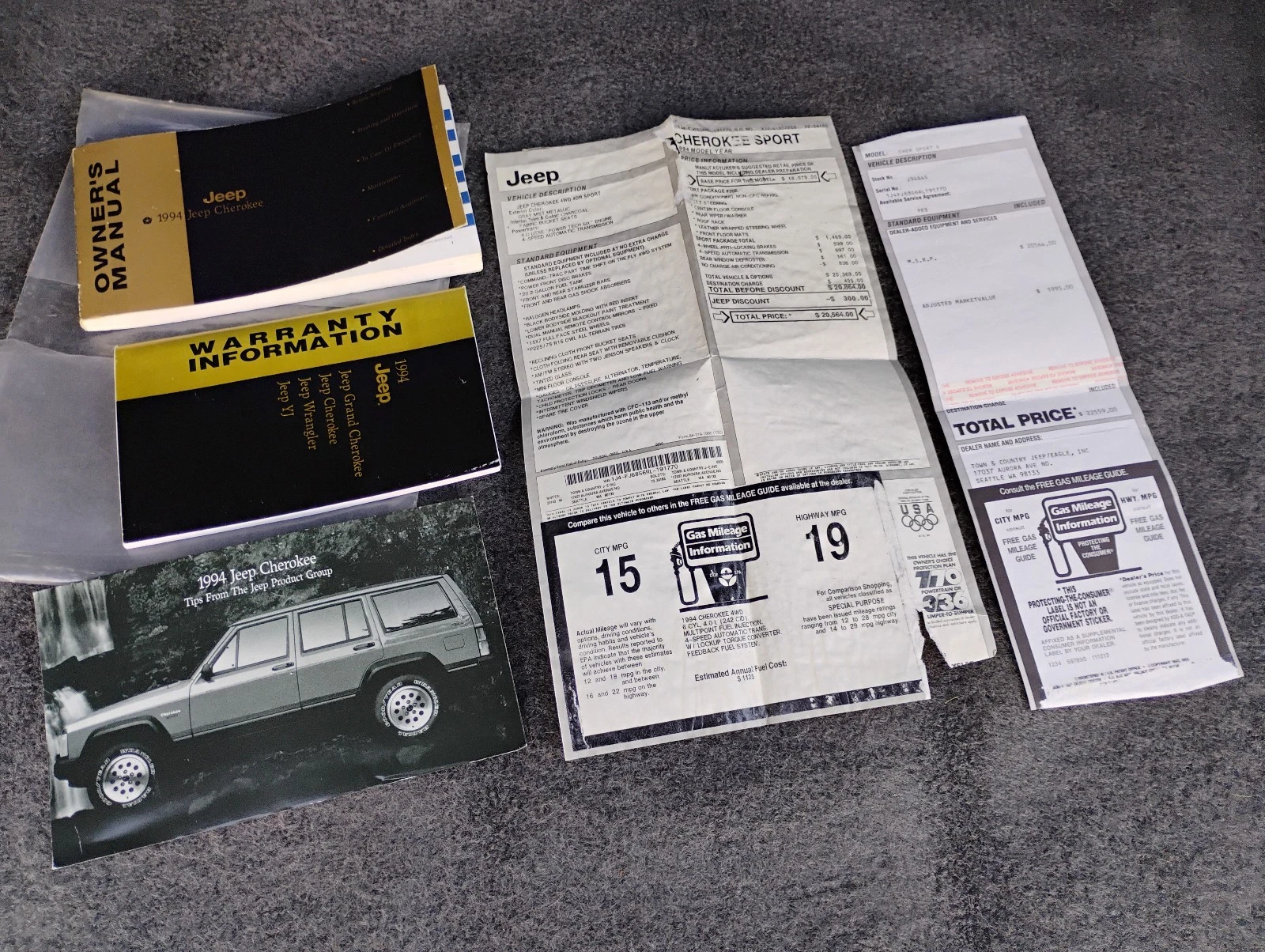 It also says this is a 1994 Jeep, and it had standard “Reclining cloth front bucket seats”, and “Cloth folding rear seat with removable cushion.”