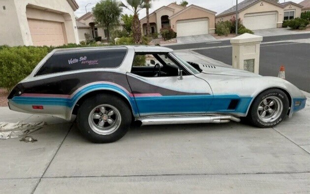I am a Corvette purist, and I enjoy the original look of these cars. But, this wagon is Kooky and very COOL! 454 with a 4 speed, this car is probably a great ride. I may take a drive down to Palm Desert to check it out and see if my skis will fit into this wagon.