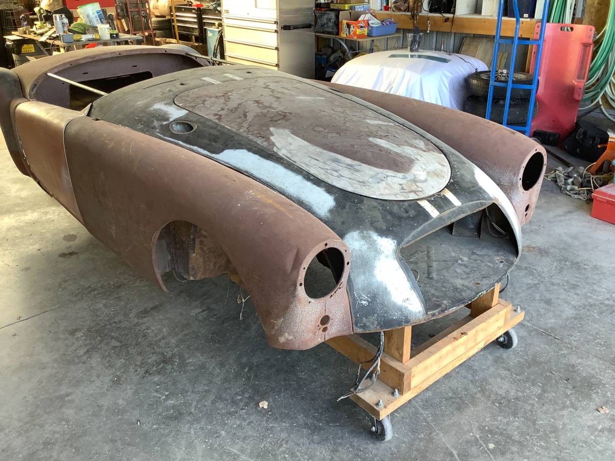 We don’t know what it might take to get the seller’s car running again. The motor is not seized, but that’s all we’re told about it mechanically. The odometer reading is 40,000 miles, but that device is broken so the actual mileage is unknown. Its body looks good, but the interior seems to have the biggest problem with a separation in the transmission tunnel. Does that signal other uses with the car and why the spare body shell was secured.