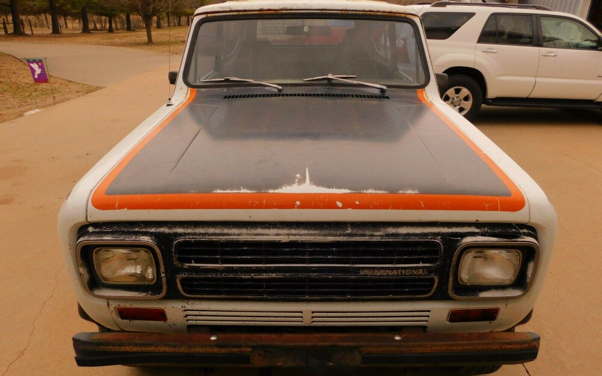 1980 Scouts are instantly identifiable by their one-year-only rectangular headlights and ABS plastic grille. The Sportstar appears to have been mostly a decal package and lacks some of the extra plastic doodads like hood scoops, tailgate inserts, and window louvers that some of the other CVI models received, though it does have fender flares. The most obvious body issues on this one are the almost identical big dents on both rear quarter panels. This damage will take some work to sort out since there is some creasing. There is some rust-through around the fender flare mounting points in the rear, but it is not too bad when you consider how rust-prone Scouts were. The paint is faded and thin but most of the decals are intact. One flare is missing and some of the side trim is falling off.