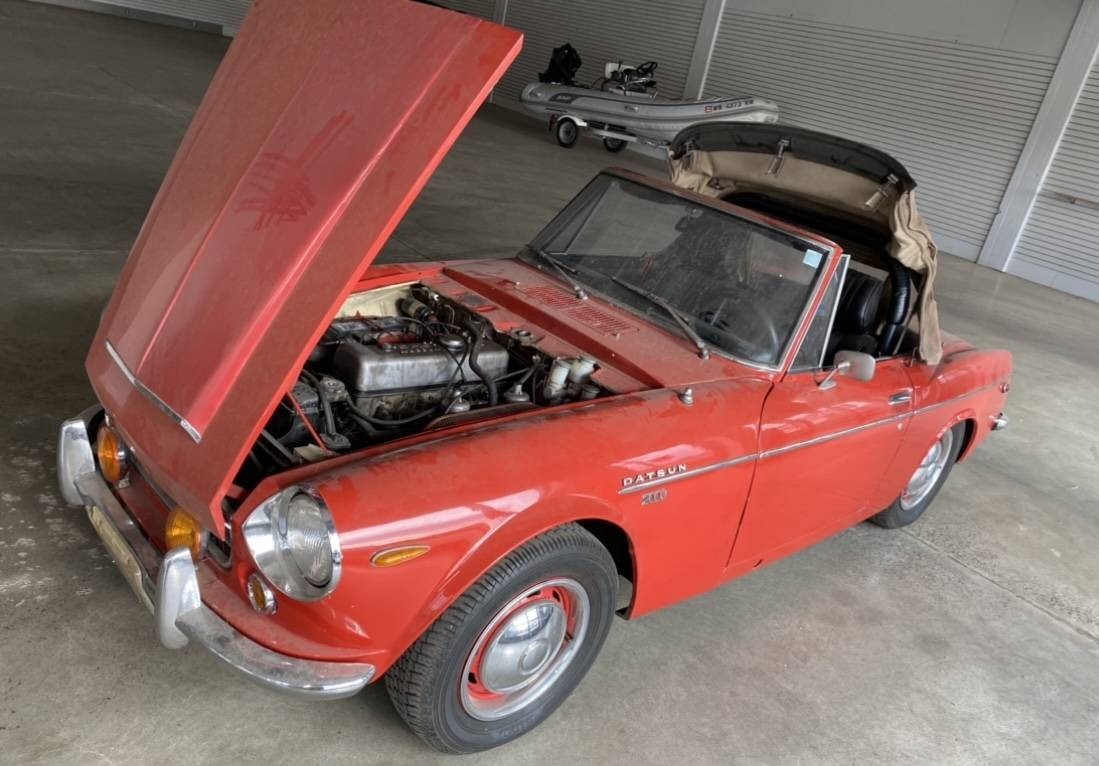 Other than a color change with new paint around 1980, this ’69 Datsun 2000 is said to be an original car. Red now, it was formerly white as you can tell by the walls of the engine compartment. While the body looks solid, we’re told that the paint has a few blemishes and bubbles, but nothing that would scare onlookers away. We’re not sure how long the seller has had the 2000, but it hasn’t been washed in seven years. This car comes with two tops: a white hardtop and a tan canvas one, with the latter said to be in like new condition.