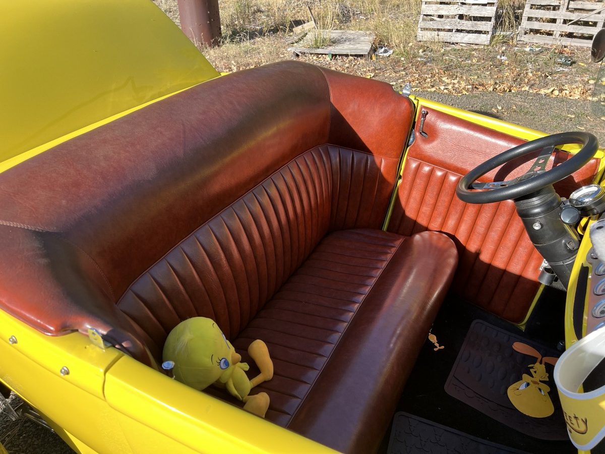 This isn’t a custom, or a hot rod, it’s a street rod. I’d get rid of all the crappy decals and that ill fitting hood and drive it for a season then put it in the shop for the winter and give this little roadster a colour change. The Tweety Bird theme is pure cringe.