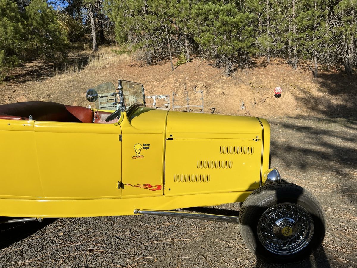 Looks like a Model A 1930-31 style body on a 1932 frame. It’s what’s sometimes called an AV8. Not a 1932 Ford, but still a neat roadster.