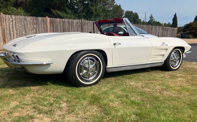 Chevrolet introduced the C2 Corvette for the 1963 model year, and it was an immediate success. The first-year sales tally of 21,413 vehicles set a new record, almost 50% higher than the previous best. Part of the secret to the latest model’s success was the company’s decision to introduce a Coupe variant, which accounted for almost half of all Corvettes sold in 1963. This first-year Convertible is a tidy classic finished in what the seller claims is its correct shade of Ermine White. There isn’t much to criticize about its appearance, with sparkling paint, excellent fiberglass, and no significant cosmetic shortcomings. The ‘Vette features a White soft-top and a color-matched hardtop, with both in good condition. The trim and glass are impressive for their age, but it is the subtle fender badges that tell the world that this Convertible is more than a pretty face.
