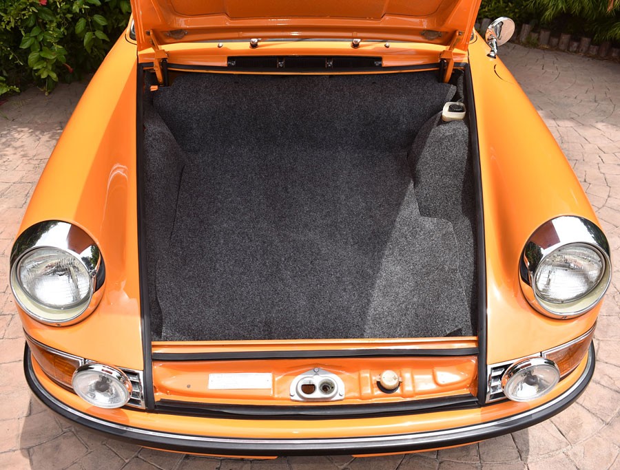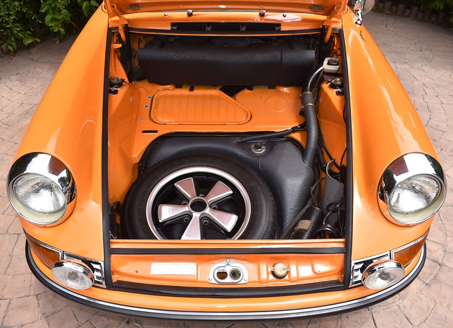 Finished in its original Signal Orange paint, it’s quite hard to find anything to fault on the Porsche. The original, clear-anodized Fuchs wheels look perfect, while the panels and paint look arrow straight and as smooth as silk. The Targa top appears to be in great condition, and even though I openly admit that I’m not a huge Porsche fan, I can certainly think of worse things than cruising around under the California sun in an open-top Porsche. The owner provides plenty of photos of every aspect of the 911, and the car really is not only as solid as a rock, but the underside is spotlessly clean. There are even photos of the trunk with the mat and spare tire removed, and it appears to be in as-new condition.