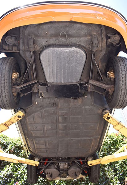 The build sheet clearly states its color as Signalorange (in one word in typical German manner). The few options are the US spec Blaupunkt radio,tinted windows and underbody rock chip protection which, together with the Cali climate and caring owner, helped keep this 911 so unmolested.