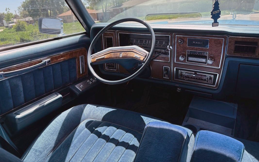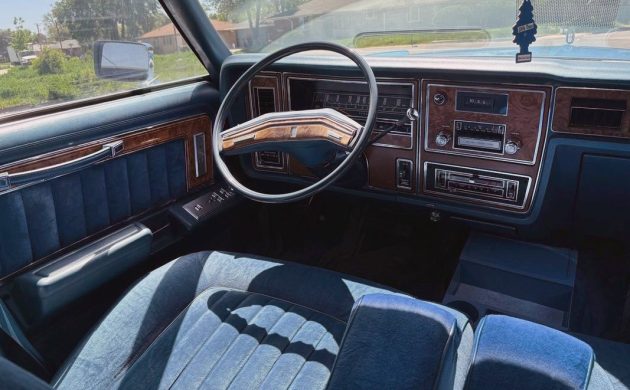 The interior is equally gorgeous in blue velour, faux woodgrain (hey, it was all the rage), power everything, and it all looks like it’s right out of a brochure; it’s so perfect. The back seat is roomy enough for almost anyone, and the trunk also looks like new. We don’t see the underside, but the seller says this car is “super flawless” without one door ding and no signs of rust.