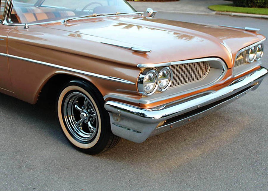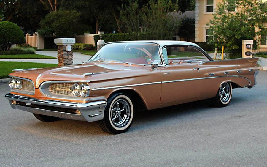 Wow! Let me be the 1st to say, what a car. I don’t care for the cheesy exhaust tips, wheels, ww tires or headlight covers, but just the epitome of Pontiacs. Right on the edge of becoming the famous performance cars, and still leaned toward luxury,,,with a kick. I don’t think you could buy a nicer car in ’59, or today, for that matter. And people are willing to pay twice( or thrice) as much for a stinkin’ VW bus? There’s a noodle scratcher for ya’.