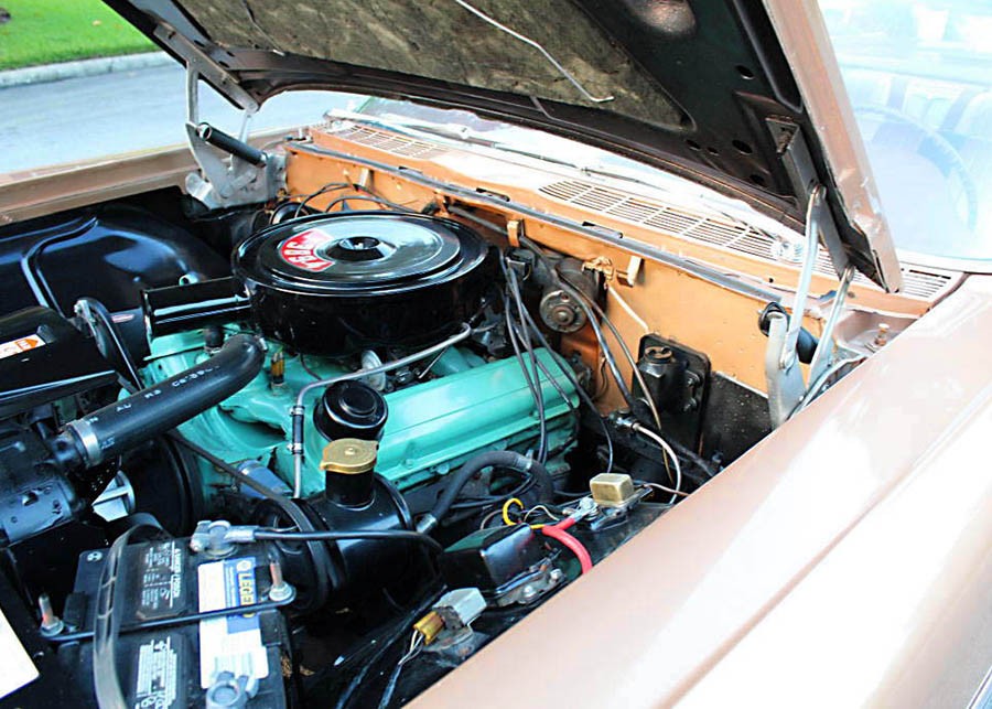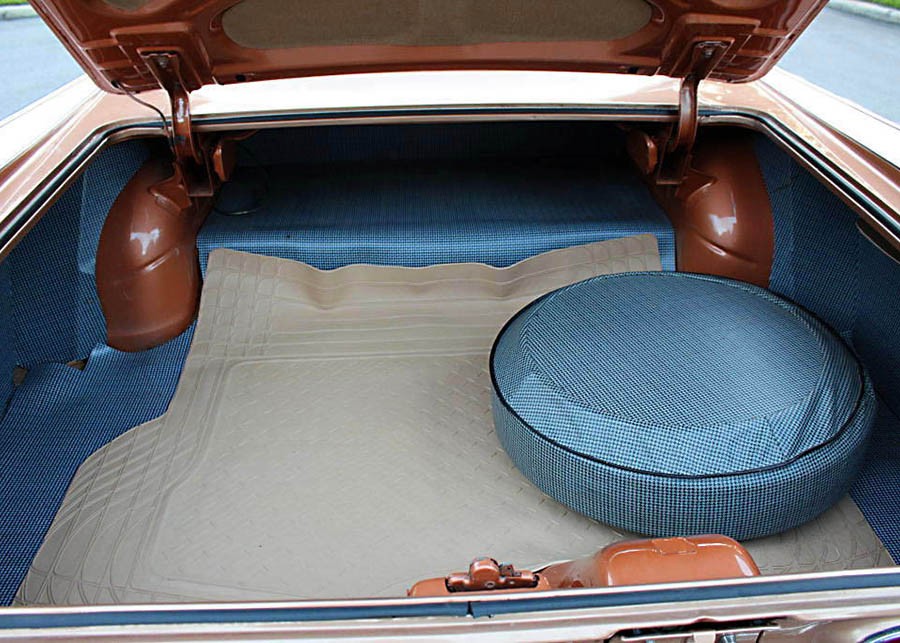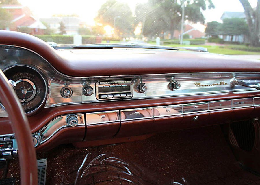 The interior of the Bonneville is probably even more impressive than the exterior. The three-tone Metallic Light Copper and Beige interior trim is close to faultless, with only a slight abrasion of the outside piping on the driver’s seat to report. The car has recently been fitted with new carpet, and it is the correct Copper Sparkle color. There are lashings of chrome on the dash, and the interior appears to be complete and original. One thing that I do find surprising on this car is the fact that apart from the WonderBar radio and a power seat, there are very few other major optional items, such as power windows or air conditioning fitted to the car.