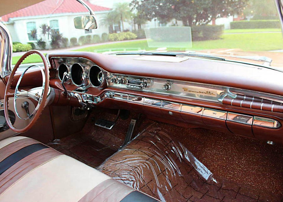 I absolutely love this Poncho, not because it’s the coolest 59 from GM but this one truly got me with that unusual copper color and matching interior.A guy in my club has a black with turquise interior 59 Bonneville, and he draws crowds and awards with it wherever he takes it.