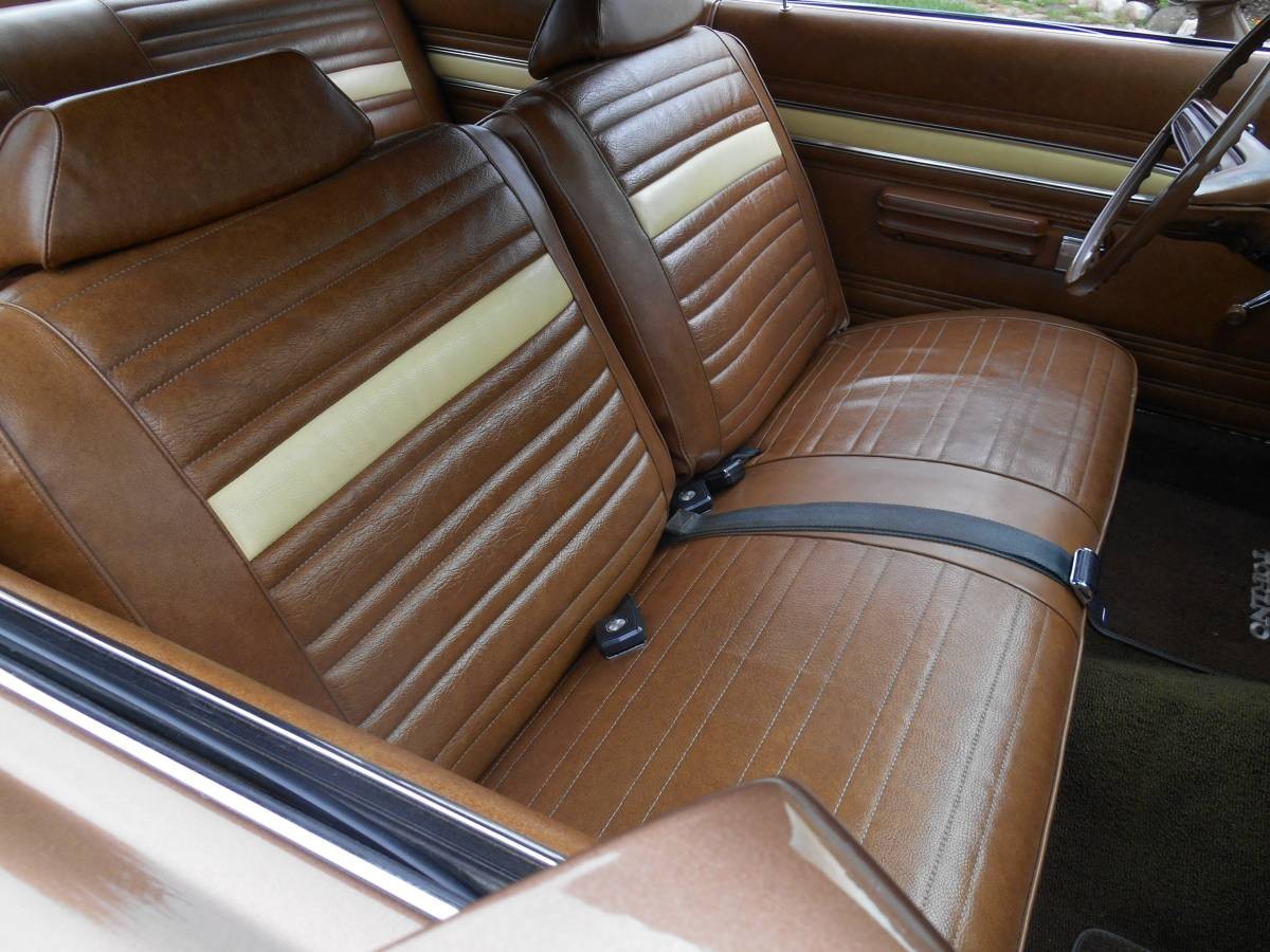 The second generation of the Ford Torino was produced in 1970 and 1971, but it was a rebranded Fairlane which dated back to 1962 as a mid-size car. The styling was quite slippery and attractive, compared to the boxier shapes that came before and after. In early 1971, Ford announced a vinyl-roof option on the Torino 500 that were called “halo” editions because the vinyl material and chrome strips did not cover the entire roofline. Only three exterior/interior color combinations were offered with the one on the seller’s car being the most popular at 14,587 copies or nearly half of special production.