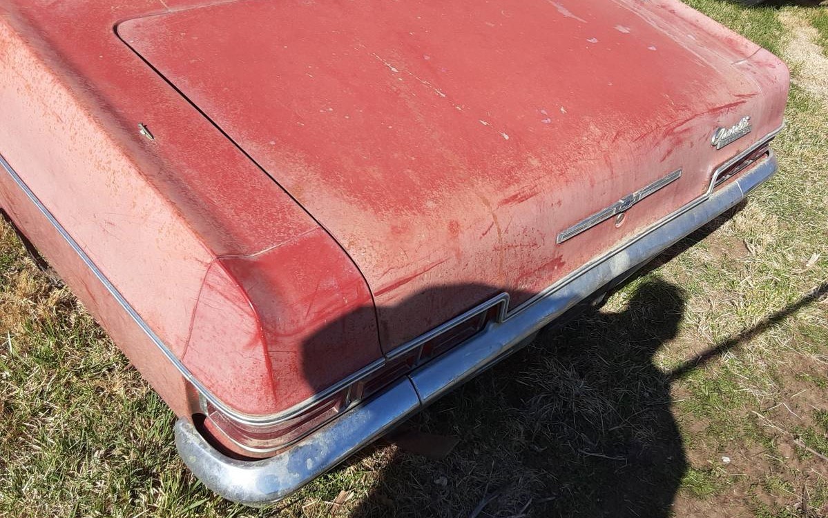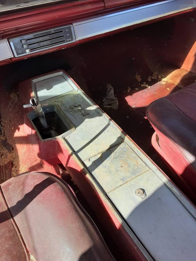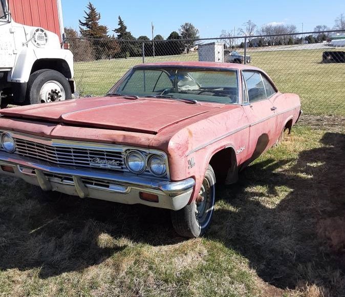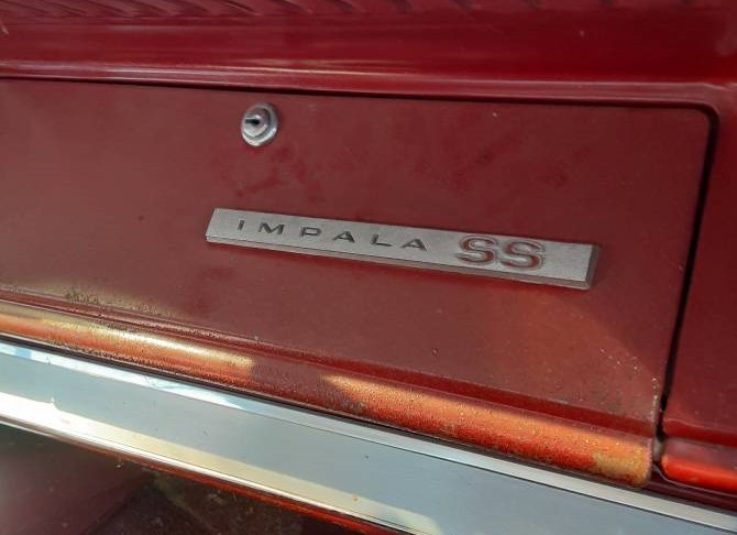 The seller of this car provides no VIN to verify it’s a real-deal Super Sport, but the badging that covers the Chevy – along with a bucket-seat interior – supports that what we see is what we get. The once red paint is faded to almost pink in some places but rust appears to be held at bay (except for the front fenders). The sheet metal is crinkled here and there and the interior will need a makeover. But we’re told the Impala has been stored inside which would have kept the elements from doing any further harm.