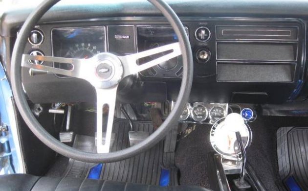 We’re told the Chevy runs well and “sounds even better.” Some of the suspension components have been renewed, and the fuel tank is fresh. The Chevy left the factory with Mariner Blue paint, which has been reapplied with some snowflake added in the mixture. Both bumpers are new, yet the seller only rates the exterior appearance of the car as an 8 on a scale of 10.