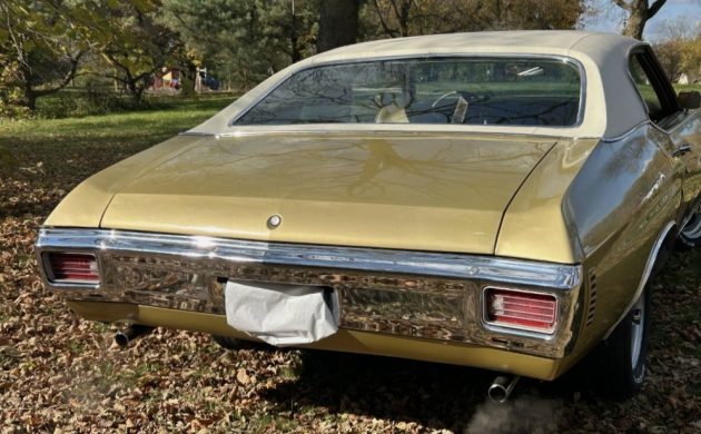 While a 350 V8 is a correct engine, the addition of an aluminum intake manifold and an Edelbrock carb suggests a 4-barrel carburetor has been employed. The car has an automatic transmission, but it could well be a 2-speed Powerglide, as they were still popular. The seller says the 72,000-mile Malibu runs well and is dependable, so perhaps the car needs nothing more to stay a “regular” Chevelle.