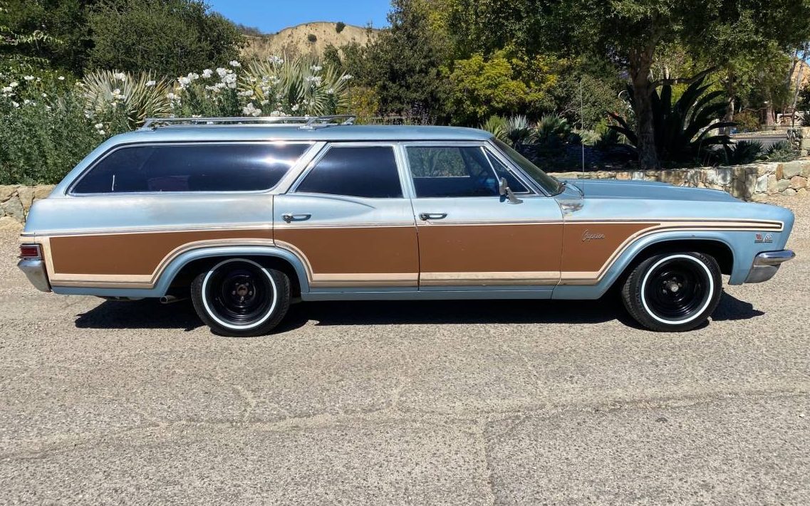 I have a nice ‘66 396 Impala s/w, factory a/c, p/s and p/b with added disc brake and 2”drop spindles.wheels are chrome rallies with flat caps. Note a concourse vehicle but I have had offers up to $30k. I know it’s crazy, but it is unmolested wagon, no rot, no rust with original drivetrain. I love it and I enjoy cruising the So.Cal. coast. Who knows if the bottom will fall out of wagon prices?? My son wants it carrying the tradition of plywood and surfboards.