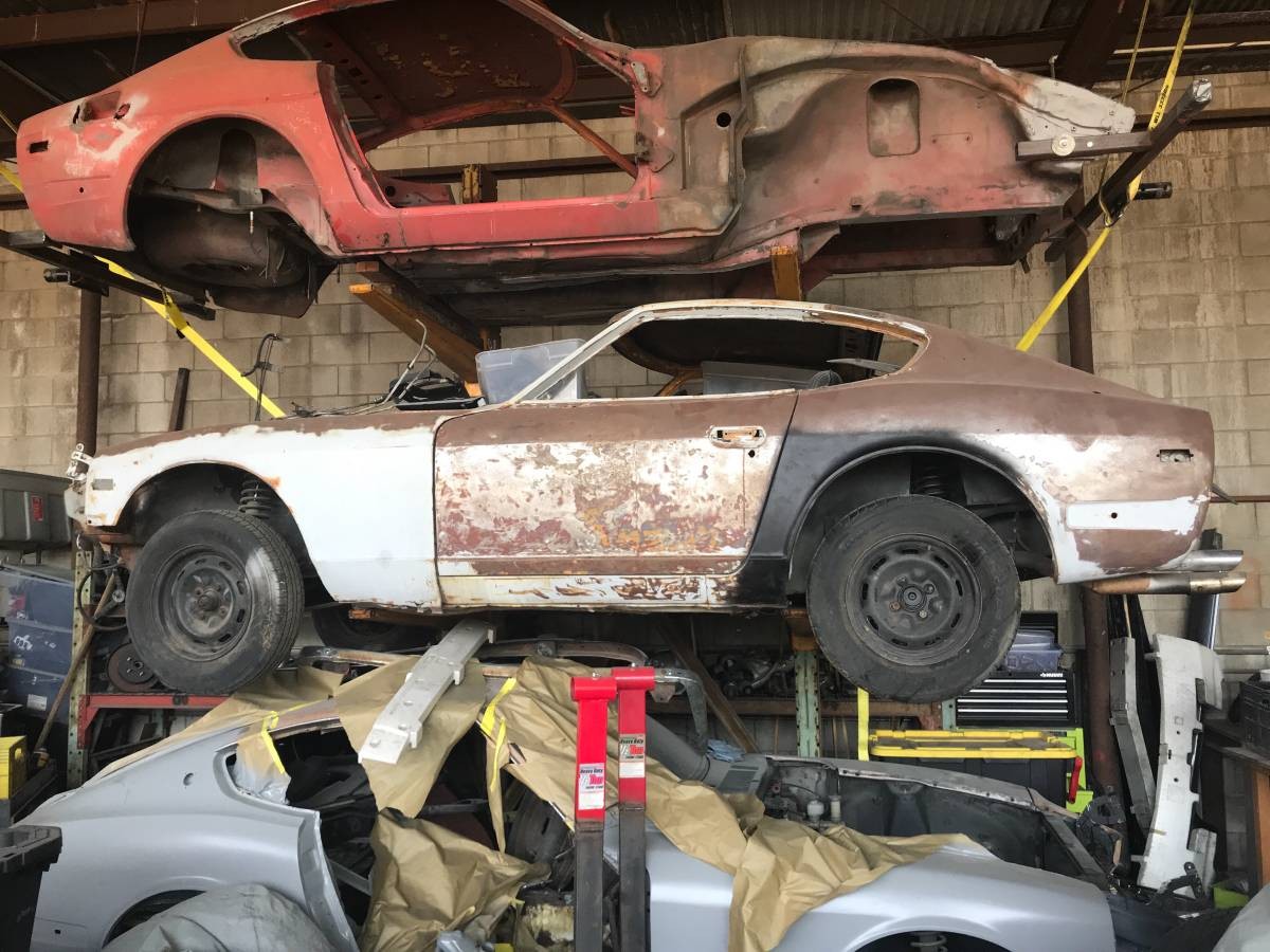 There are days when I feel like my garage is truly too small. Well, it is – when it doesn’t have too many cars jammed into its 2.5 car footprint, it’s over-stuffed with parts I might need “someday.” This seller clearly has an answer for this problem, which is to go vertical. The seller has a collection two desirable Series 1 Datsun 240Zs and a later ’73, all in need of total restoration and listed here on craigslist for $10K as a bundle.