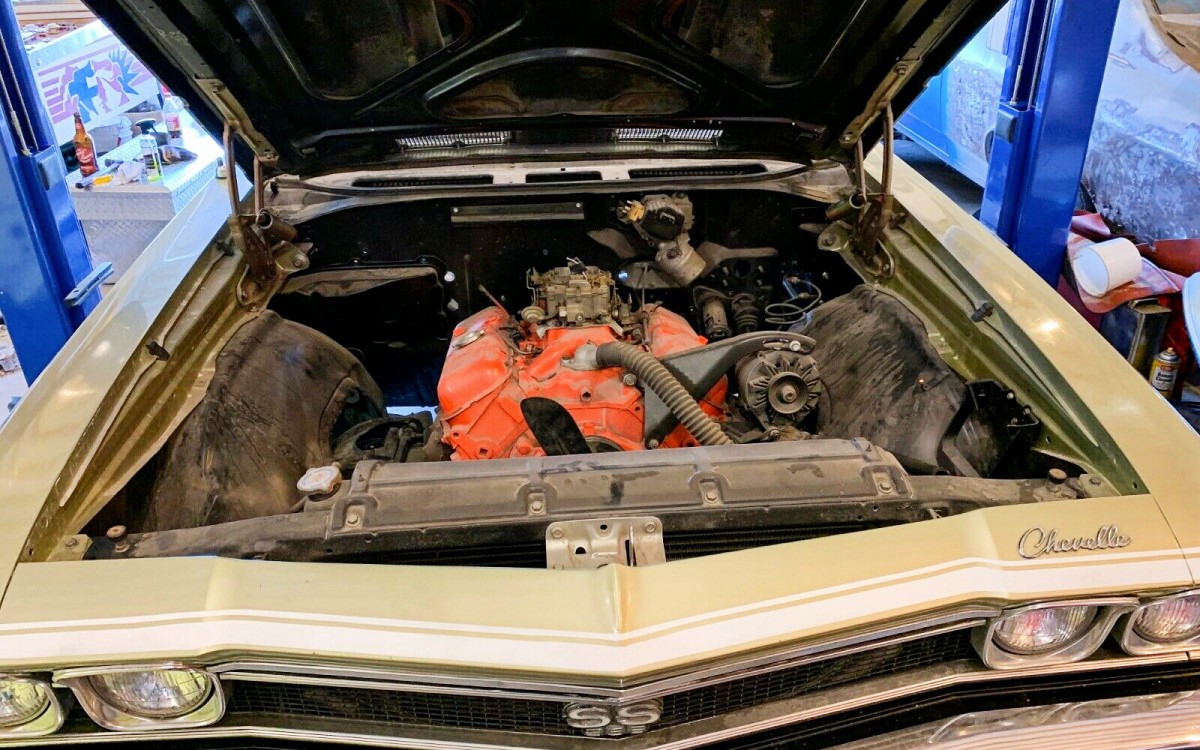 It looks like a Rochester carburetor and cast iron intake to me, so I’d guess it’s either a 325 Hp or 350 HP 396 motor. As Josh said, which motor it is and matching numbers means a lot to the value of the car. There’s no mention of motor condition or if it even turns by hand. Also the eBay ad says “manual transmission” but doesn’t say if it’s a Muncie 4 speed or what condition it’s in.
