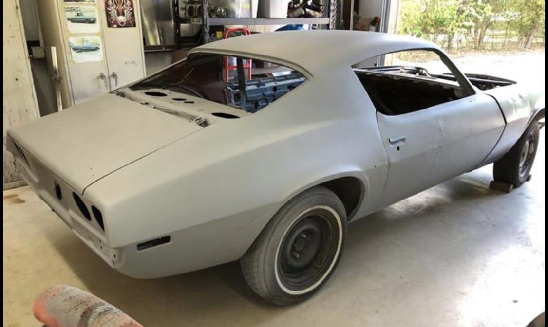 You could make a 72 out of this, pre smog, pre bumper. Get yer own mill and tranny.. Put split bumpers etc back on it. If you have a rust bucket and need a fresh start this might be the way to go. Of course you would need to look at it real close and see if it was done properly, Primer hides a load of sins. Good luck, might be right up your alley!!