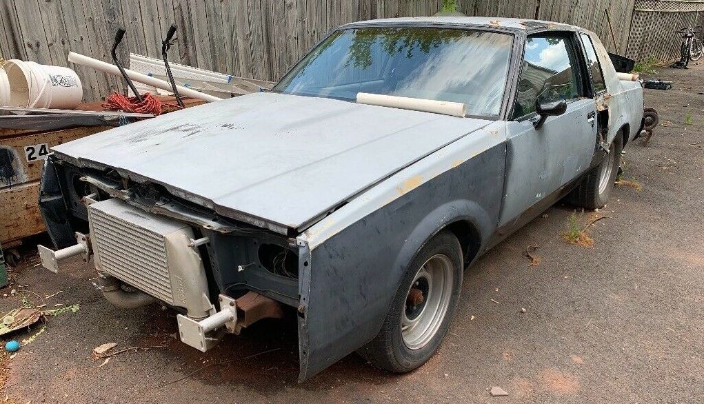 Unfortunately, beyond the surprise offspring scenario, not much other information is laid out for us. The Grand National last ran in November, when it apparently entered an initial phase of disassembly. The removed parts are still with the car, including the front bumper, grill, and headlight assemblies. The radiator looks quite fresh, so perhaps the seller was going to have those body panels refinished while the new radiator was swapped in. It’s evident that some level of bodywork was first on the list of to-dos given the primered surfaces.