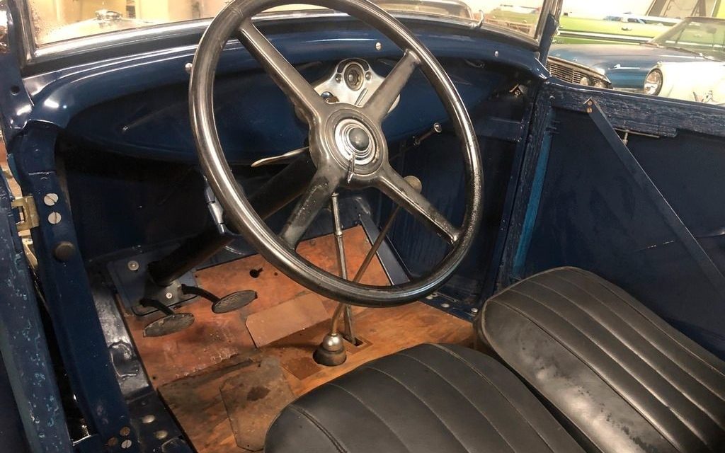 This Model A is finished in Washington Blue over Riviera Blue with Tacoma Cream painted wire wheels. The body and paint are included in the “90% completed” estimate and look to have survived nicely over the last 4 decades of indoor storage. Since the restoration wasn’t yet complete, this restored body has not yet seen the light of day. Notice there is not a top in any of the photos. Well, that’s because one isn’t included. We’ll assume the lucky buyer of this one will be finishing the last 10% of the restoration, so add that to the list of needs.