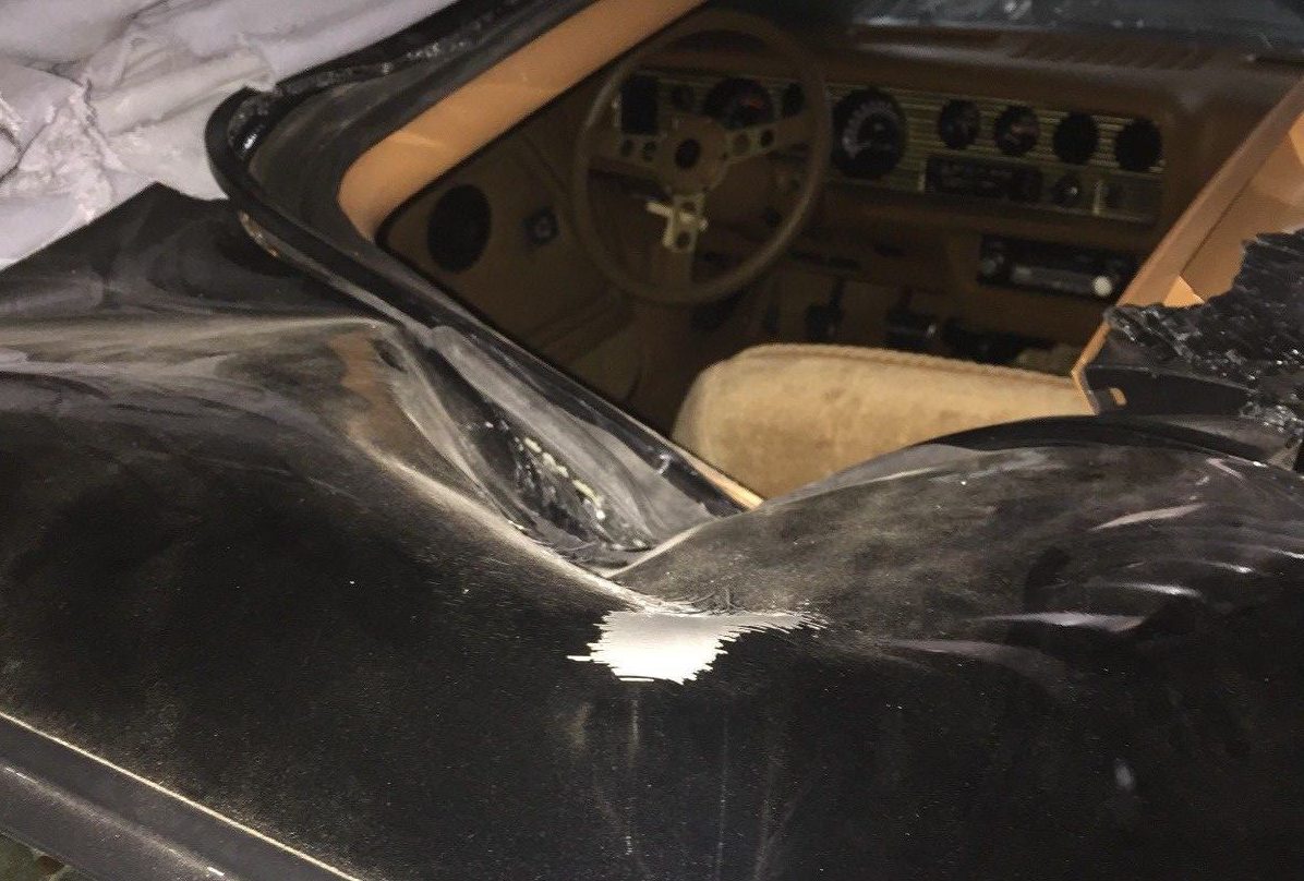 Here’s some of the damage, which is just behind the above photo on the T-Top roof; the hood is also damaged but the Shaker escaped unscathed. This is an interesting project, as the low body mileage would almost certainly warrant the repairs necessitated by the building collapse, and the desirable 455 engine should really stay with the Trans Am given its long tenure in the “mutant”, as the seller describes his project. And if you do buy it, you must find a set of period-correct Cibie fog lights to mount up front, because they look the business.