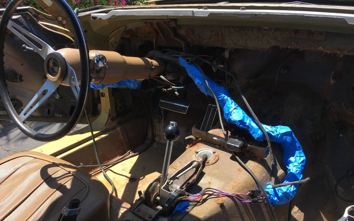 The story goes that the Corvette was parked for about 10 years after the prior owner passed away and that the current owner bought it from that man’s widow. Fortunately, the seller had the foresight to take some photos of the interior when it was intact, as it was when he acquired the car. He claims that many pieces of the original interior are in great shape, and the photos seem to back that up.