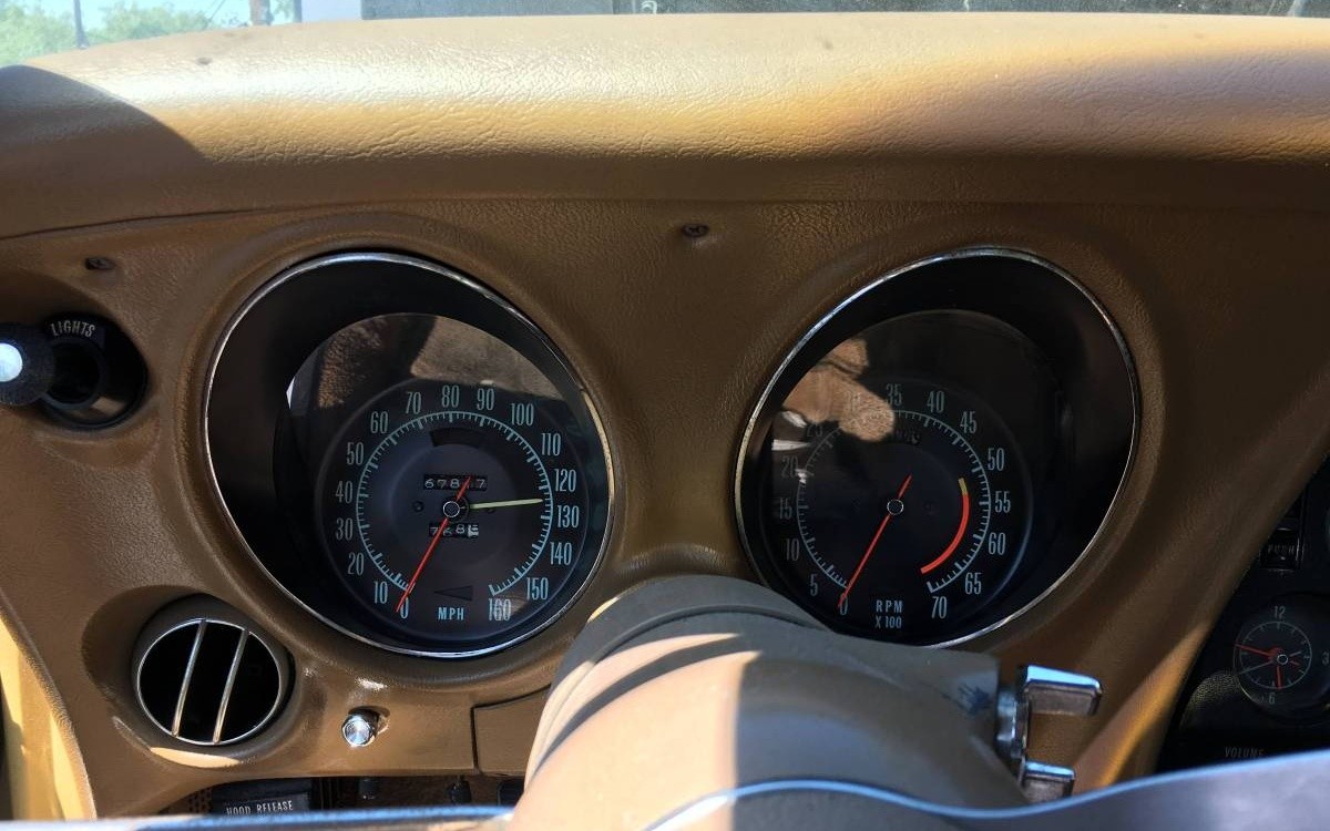 Powering the Corvette is the original 350 cubic inch V-8 engine and an automatic transmission. Even though the car sat for 10 years prior to his acquisition, the seller says that it was started regularly during that time and that the engine does not smoke. The car is said to start and stop, but the brakes are going to need attention and the tires need to be replaced before it can be driven at speed and that it will need to be trailered home.