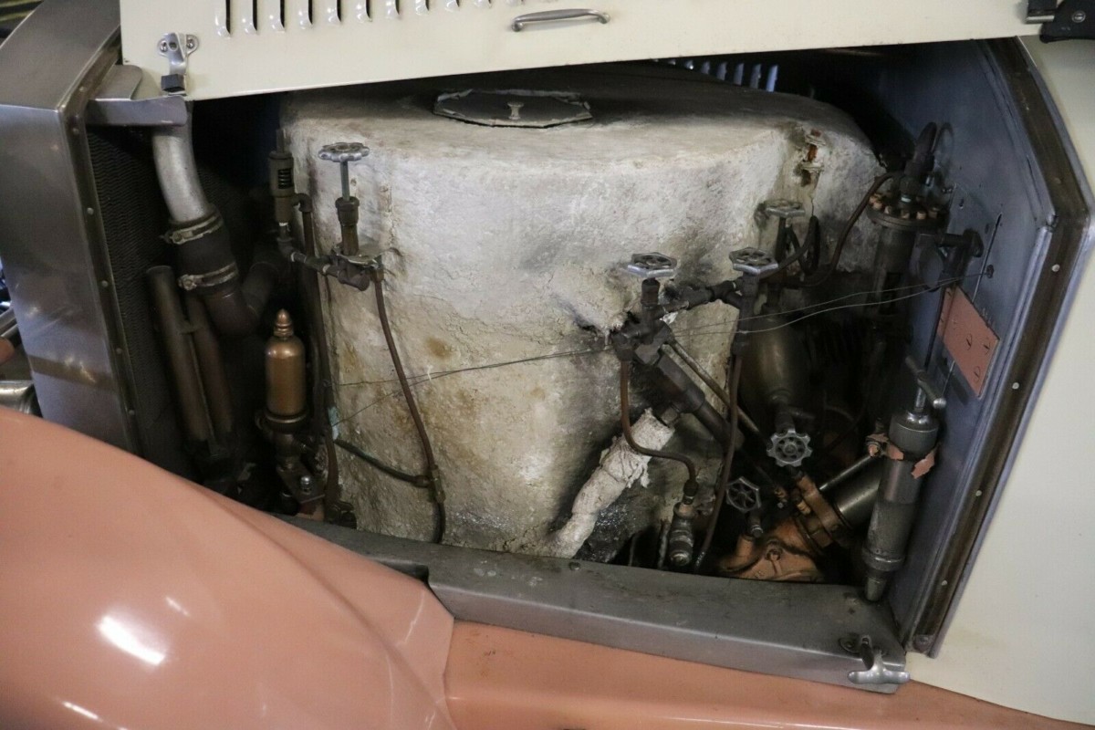 When you look at the outward appearance of the Stanley, there really is nothing that sets it apart from any other mainstream vehicle of the era. The body is quite conservatively styled, but a closer examination reveals the first indications that this vehicle is something quite special. Rather than utilizing steel for the body panels, Stanley chose to build the body of the Steamer from aluminum. This saved a significant amount of weight, which was vitally important in a car that actually produced fairly low power outputs. The body on this car looks nice and straight, with no obvious dings or dents. The vehicle underwent a restoration some years ago, but it has remained stored away in a barn for the last 10-years. The color combination of Beige and Peach is an interesting one when compared to other vehicles from the same era, and it is guaranteed to make the Stanley stand out in a crowd. The frame is said to be solid and rust-free, while the trim and chrome look like they would present well with a thorough clean and polish.