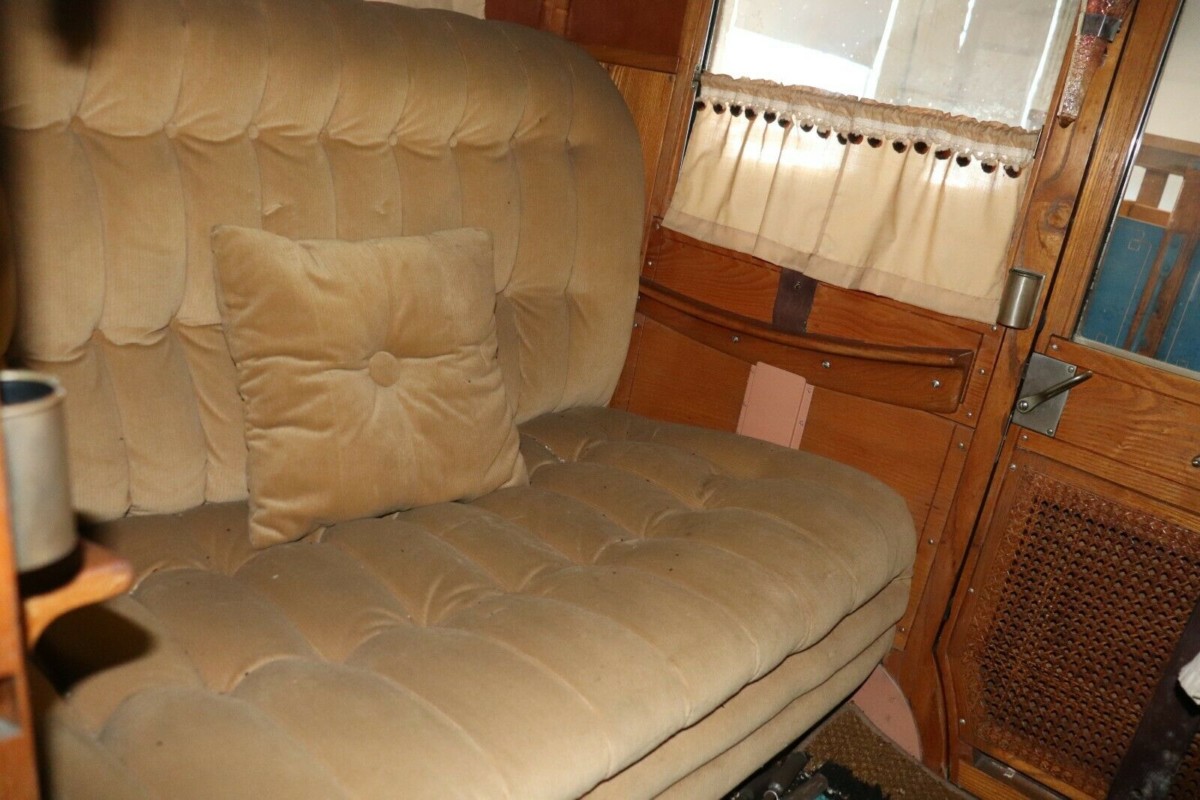When compared to the driver’s compartment, life in the rear seat of the Stanley looks like it was very luxurious. Deeply buttoned cloth upholstery on the seats, an adjustable footrest on the floors, curtains on the windows, and even a pair of vases for freshly cut flowers really set the theme back here. Once again, all of the timberwork remains in nice condition, and as is the case with the driver’s compartment, a deep clean will once again have this area presenting at its luxurious best.
