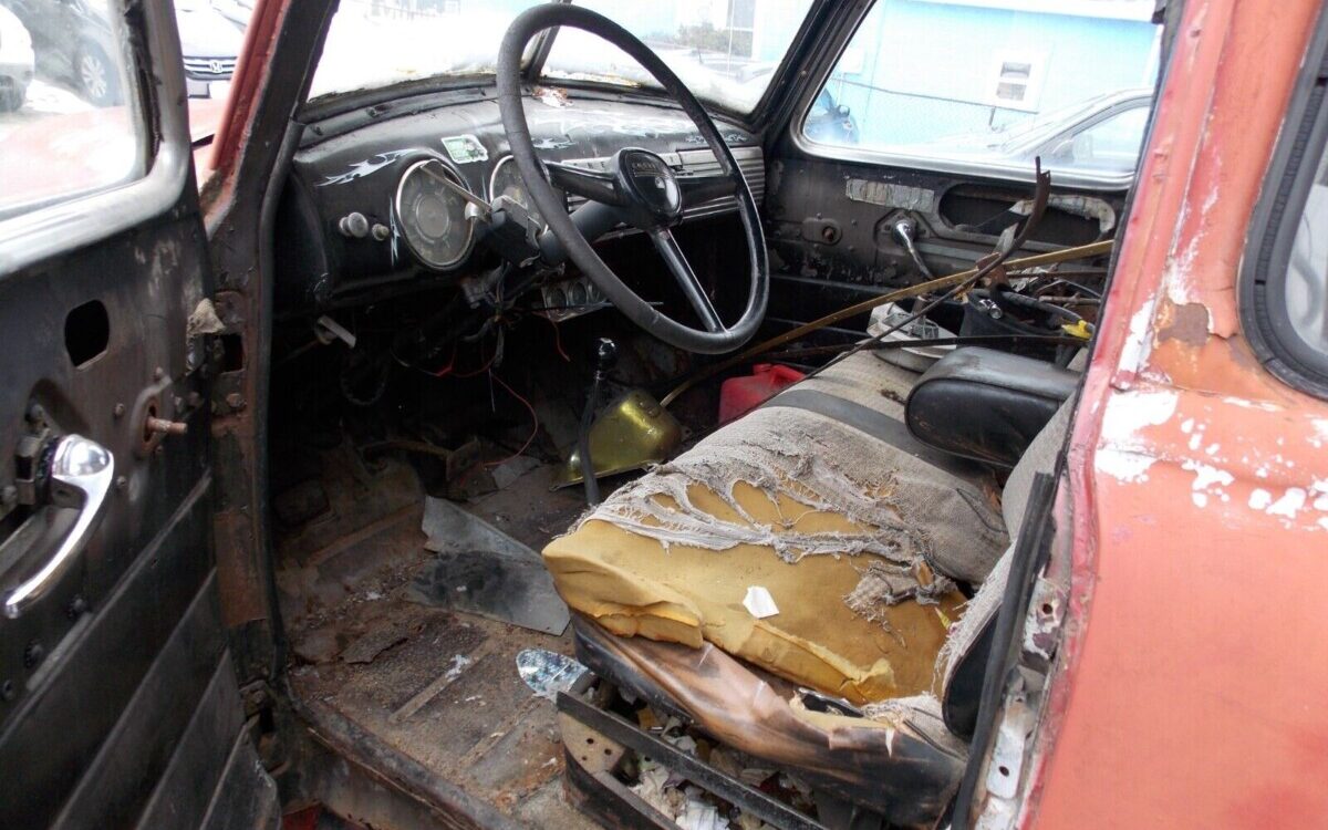 I’m not sure what happened to that bench seat beside it not being original (note the fold-down armrest). However, it looks like it has run afoul of a weasel. Additionally, parts of the door panels are missing, and the floors look shaky. Despite the suggestion that they’re OK – they’ve definitely been poorly patched. The dash shows some interesting artwork, but the instrument panel gauges have been left as original and are accompanied by aftermarket, under-dash pieces. Of note is the strap-on turn signal assembly, a common add-on feature to vehicles from this era. Unfortunately, as is often the case, there’s a lot of “whatever” scattered about in the interior compartment that detracts even more from an environment that doesn’t need detracting.