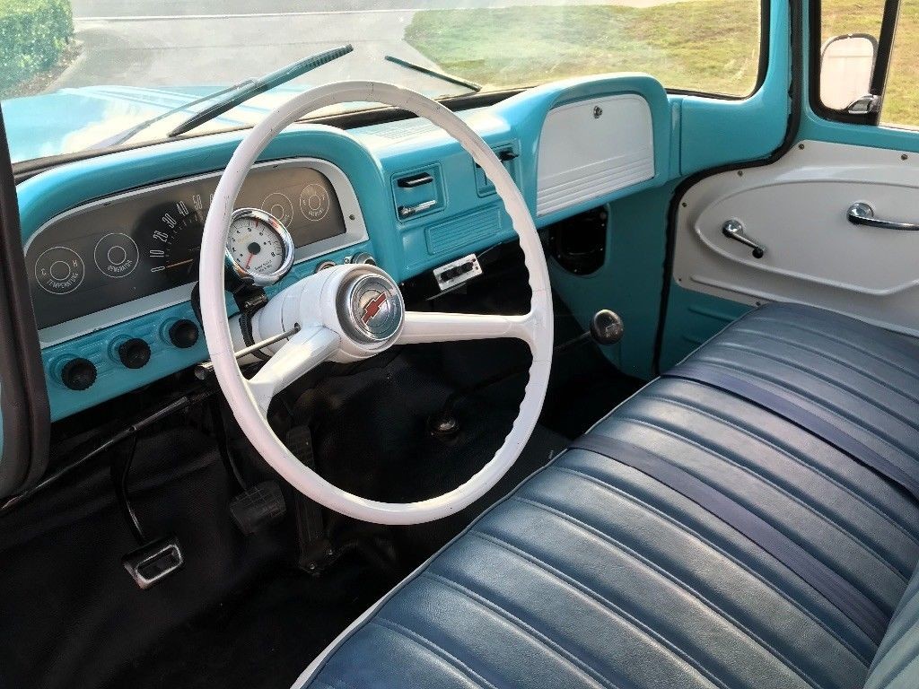 I like the truck but it’s definitely not original. All trucks had a bronze/pewter interior regardless of the exterior. This is still a nice touch. 350 engine is kind of an act of desperation. The only V8 available in this was a 283 2bbl. That would suit me just fine. When my dad was finished with his ‘61 Eyebrow pickup he got a ‘63 which was basically the same except for a 283/automatic. He never kept it very long, but back then he did a lot of horse trading…