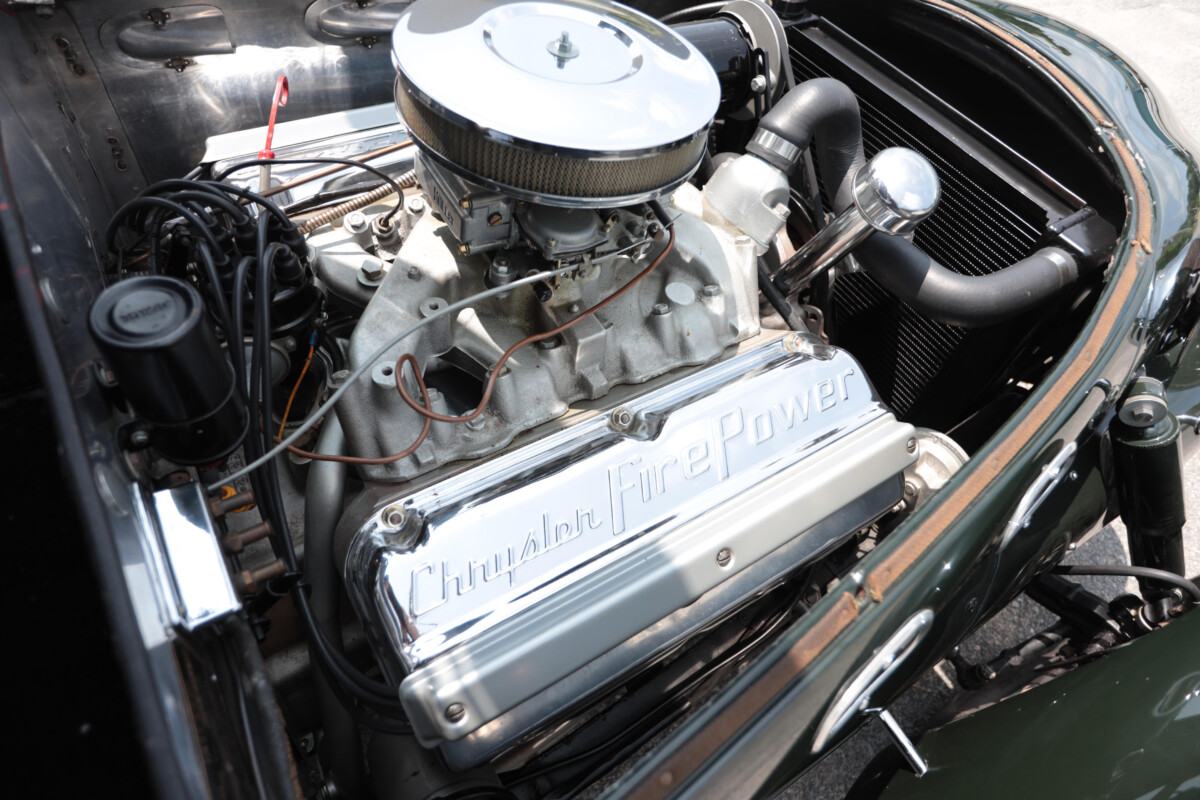 This example is a J2X, which was an extended version of the J2. The additional length provides a larger and easier-to-access engine bay, which had the added benefit of expanding the range of engines that can comfortably fit in the car. While Ford engines were the standard option, cars destined for the American market shipped without an engine, leaving it up to the buyer to decide what engine to use. Many of these cars received a Cadillac V8, but this example received a Chrysler 331 cui Hemi V8 with 250 horsepower. It’s believed that this engine is original to the car, but it’s hard to know for sure as there’s no documentation from when it was new.