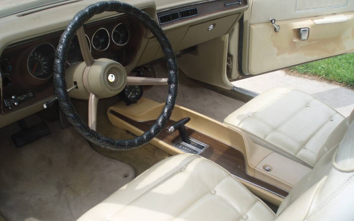 The original owner of this Road Runner was looking for more oomph than what the standard 318 CI engine could muster, so a final year, 240 net HP 340 CI V8 was specified right along with a TorqueFlite three-speed automatic transmission. “Excellent running condition” is claimed by the seller. While probably not a barn burner, I imagine the performance is still robust enough to be enjoyable. Of note is the non-original Edelbrock carburetor and “bugeye” air cleaner.