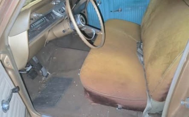 We don’t know how long this Chevy has been in the dimly lit barn. Nor do we know if it even runs, a six-banger with a 3-speed manual transmission and possibly 100,000 miles on the clock. The degree to which rust is an issue is unknown, too, but the car was once in an accident. The passenger side front door has been replaced (blue) and the door panel wasn’t switched. So, the whole car will need to be repainted, and the interior may also need a makeover. If you want this Chevy to be restored or for parts, there is no title (only a bill of sale).