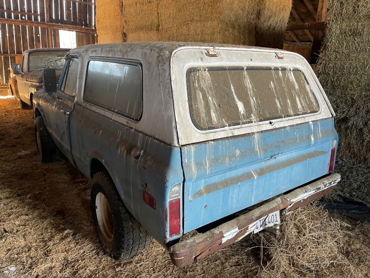 RUSTY FRONT FLOOR 1971 CEVY BLAZER—1969 FRONT CLIP. RAN WHEN DRIVEN INTO BARN—STILL WILL