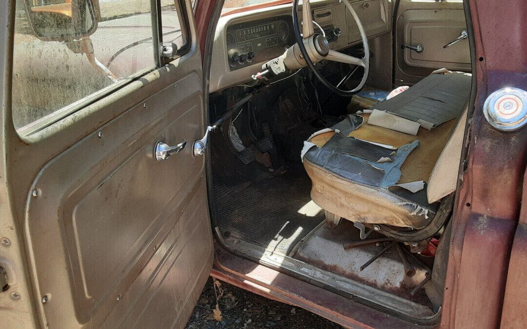 Power is provided by a 170 gross HP, 292 CI, in-line six-cylinder engine doing its torquey best via a four-speed manual transmission. The engine is said to have been rebuilt about 13K miles ago. The seller adds, “It smokes a bit now but runs well enough to drive and load onto carrier/tow-truck“. I have to say that the engine is surprisingly grimy looking for recently having been rebuilt and I’m not sure what’s up with the smoking problem. The listing mentions that brake work is needed.