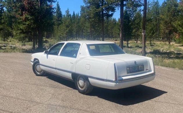 Just as its sheet metal styling shifted over the years, the DeVille (spelled at least five different ways over the years) was first situated on a monstrous 130″-wheelbase, rear-wheel-drive platform, then spent an interlude as a downsized front-wheel-drive offering, only to upsize once again in the mid-90s. Meanwhile, the engine bay was typically occupied by a V8 (except for brief invasions by V6s interspersed over the years), this one being a 4.9 liter with about 200 hp backed by a four-speed automatic. Despite an odometer reading of 113k miles, the seller indicates that the car runs and drives well.