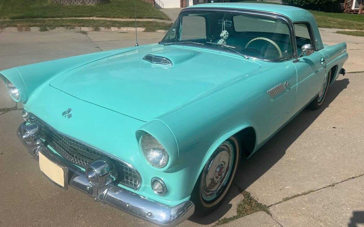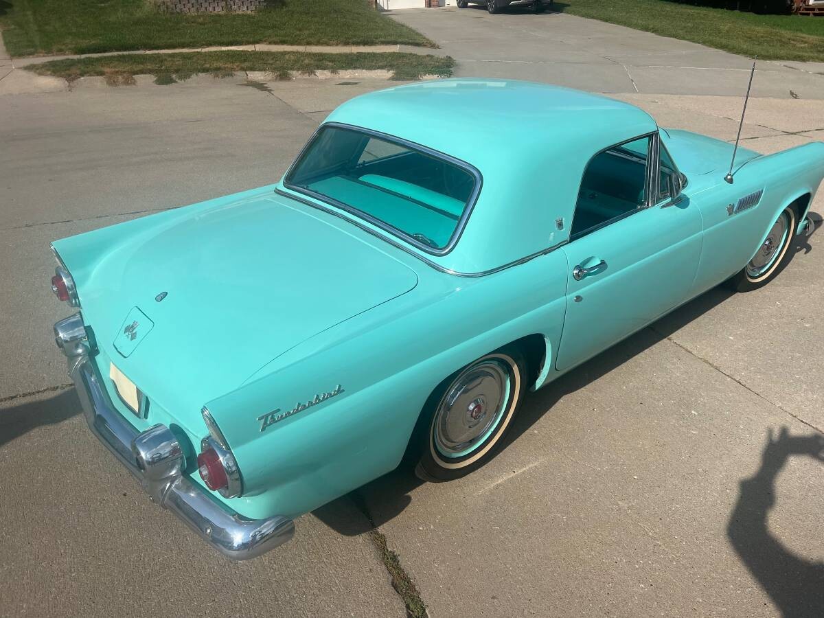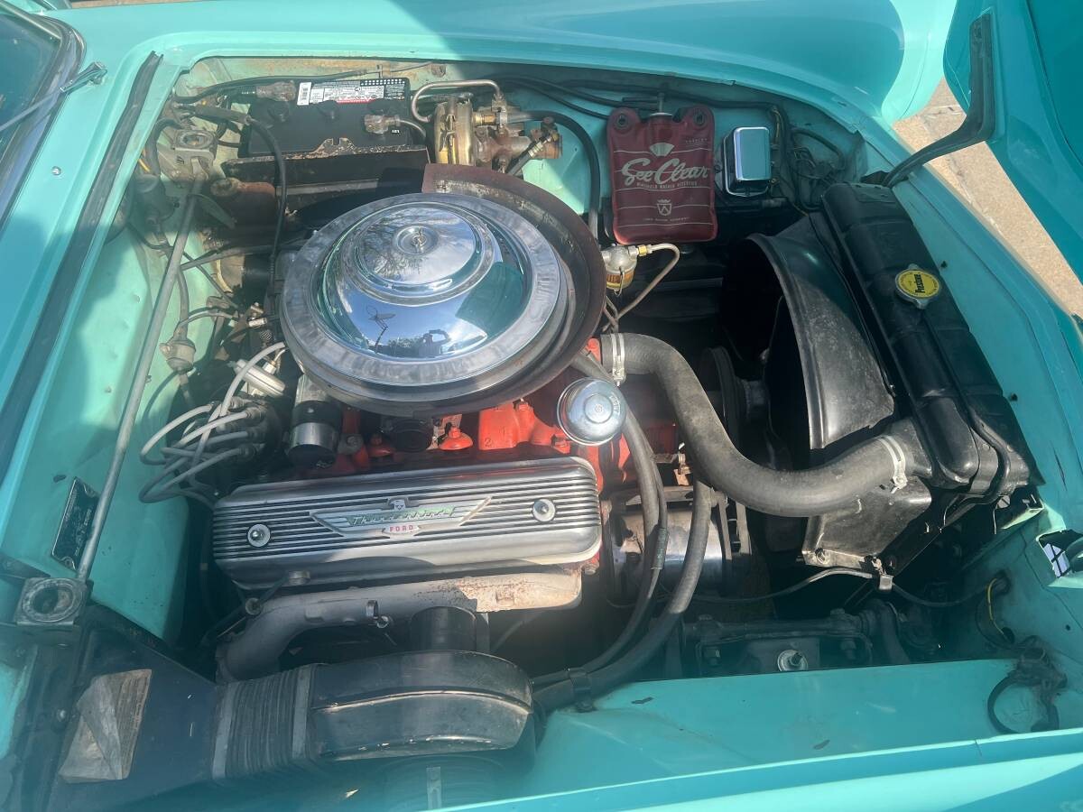 The “P5” in the serial number suggests that the Thunderbird is a 55 with a 292 V8 and a 4-barrel carb. Not a big deal. It will make somebody a decent weekend driver.